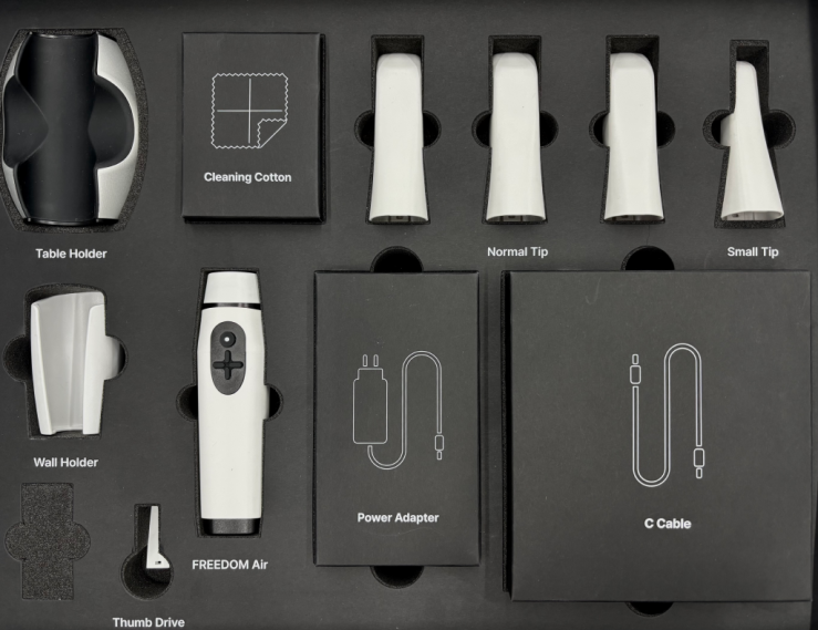 - Lekki i ergonomiczny – Waży zaledwie 145g, jest jednym z najlżejszych skanerów wewnątrzustnych na rynku. To znacznie redukuje zmęczenie nadgarstka i poprawia komfort pracy przez długie godziny.